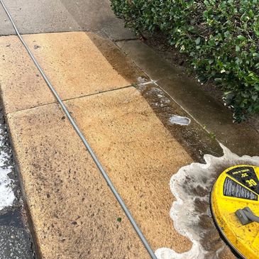 Pressure washing can be used on a variety of surfaces including concrete, and brick surfaces.